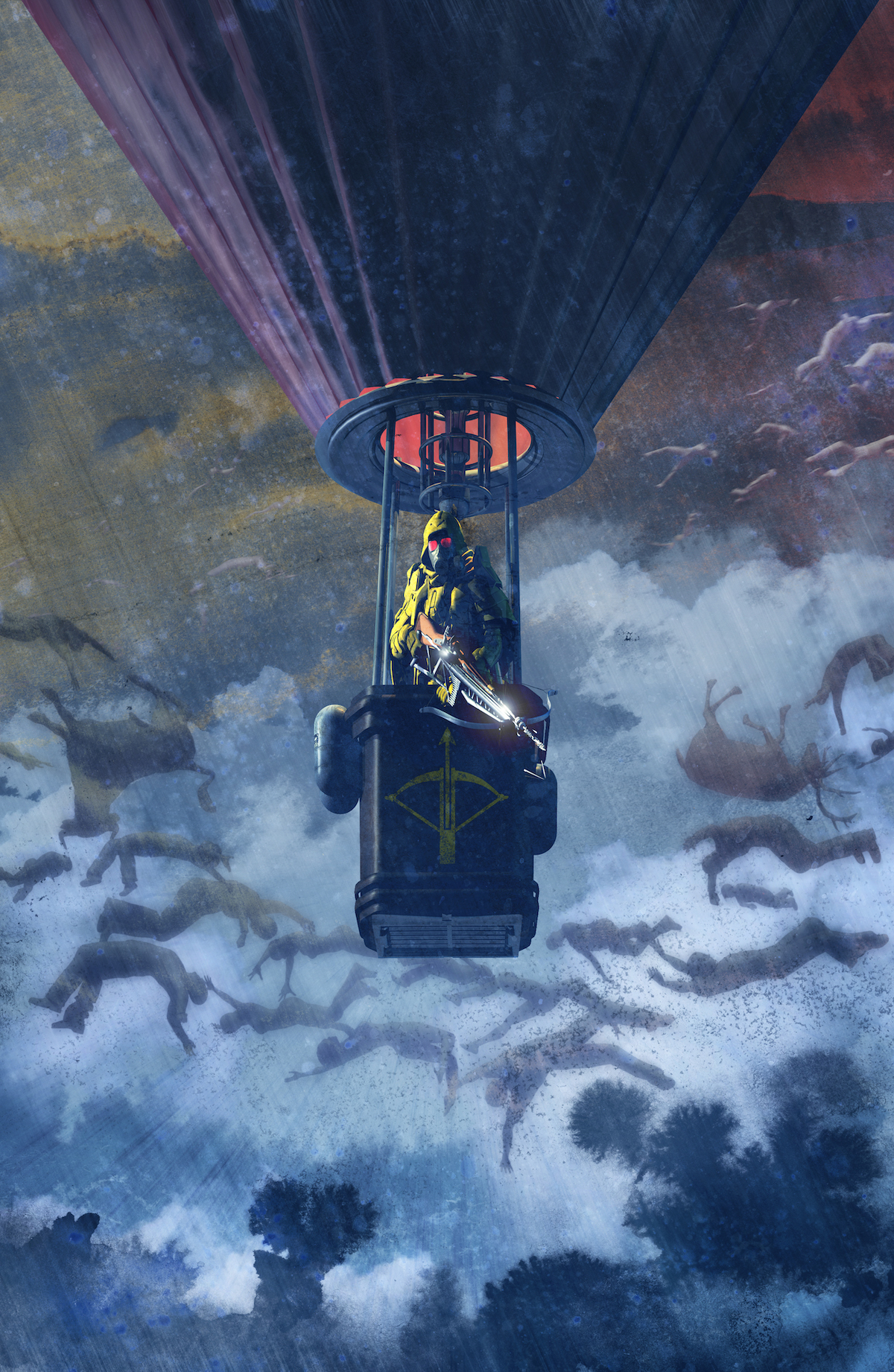 Il trentunesimo giorno il cielo si apre e dalle ultime nubi si affacciano stormi di sagome fluttuanti. Sono cadaveri! Migliaia, milioni di corpi che si fanno beffe della gravità rispondendo solo al vento e alle correnti d’alta quota. Da dove arrivano? Come ci sono finiti lassù?