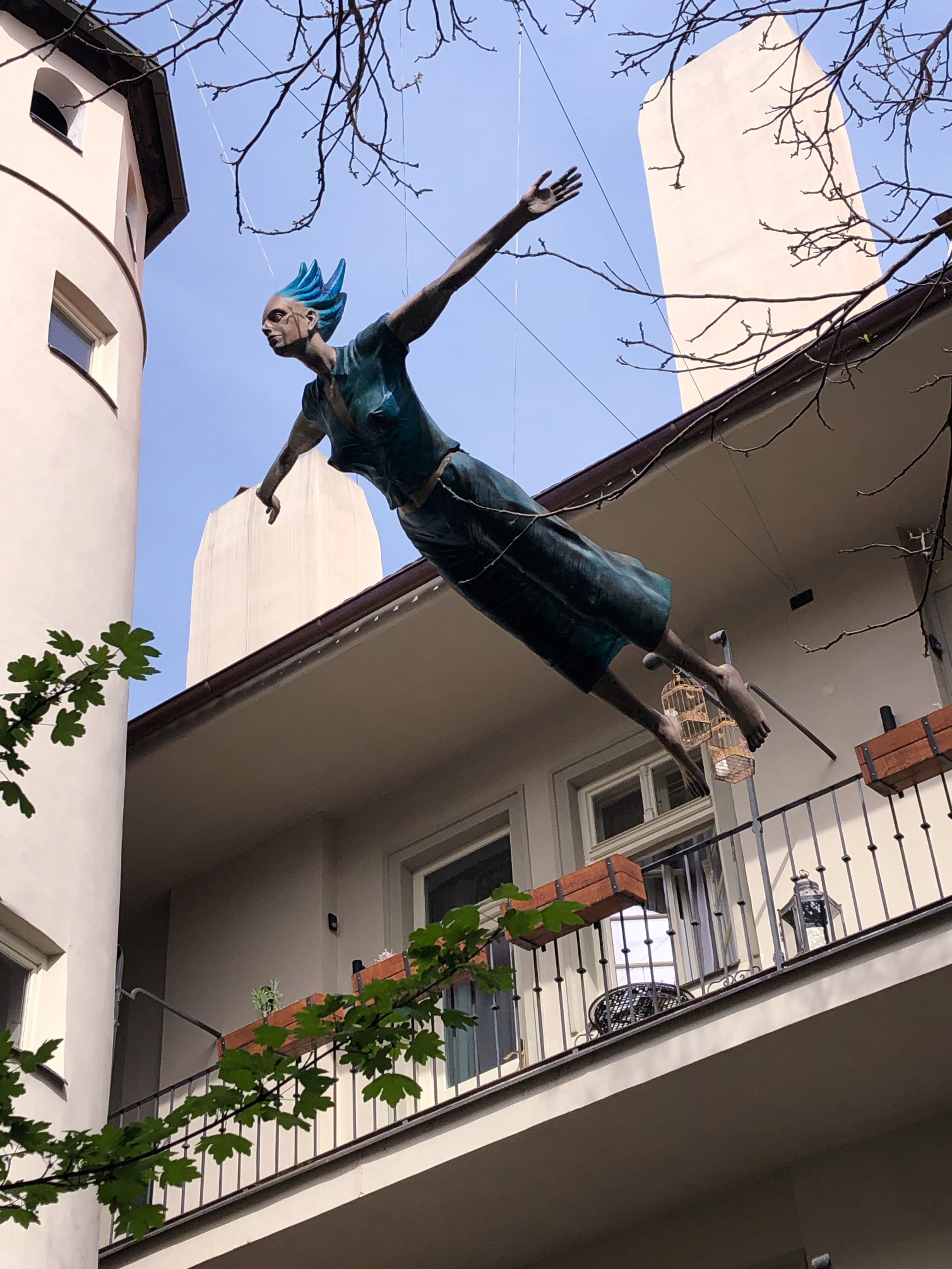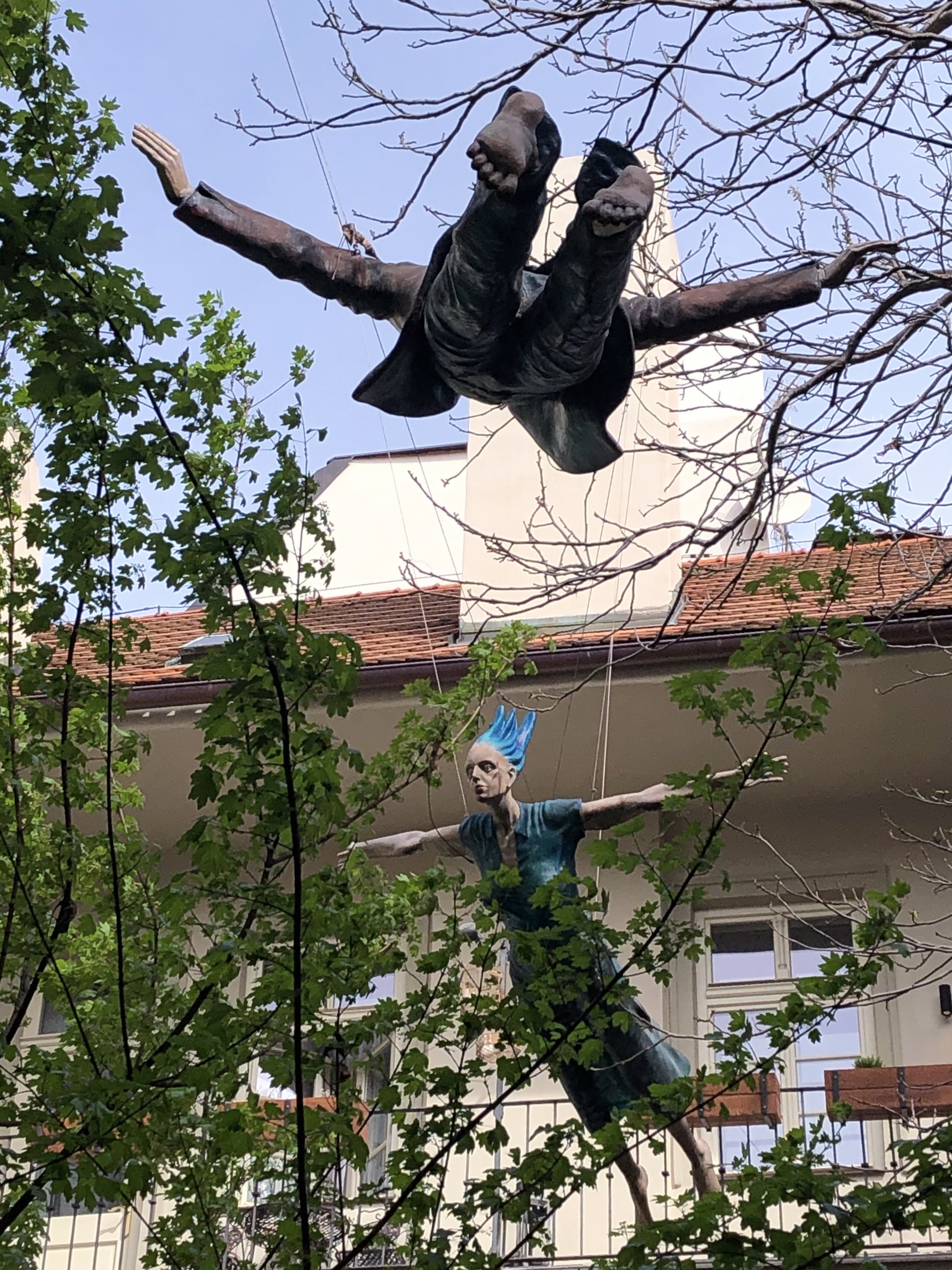 Nel frattempo, per sentirsi più sicura, la gente comincia ad ancorarsi al suolo usando catene e robuste corde di nylon. E con il naso all’insù sopravvive di meschini espedienti, in attesa che oltre a scarpe spaiate e ciocche di capelli, dal cielo piovano un rotolo di banconote, un prezioso gioiello, le chiavi di una nuova vita…
