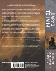 Nel caso del primo libro (sugli scaffali già dal 16 maggio), per questioni di marketing interne alla casa editrice, è stato proposto all’autore di modificare il titolo in modo che non comparisse un numero in copertina: da qui l’idea di attingere a una formula sdoganata con enorme successo da George R. Martin e tutto sommato molto evocativa dell’intero contesto della saga di Mondo9: “Cronache della ruggine e della sabbia”.