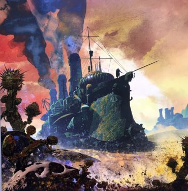 Riprende più o meno da qui un’avventura cominciata in realtà nel 2015: estate, caldo, letture sotto l’ombrellone. E un Millemondi intitolato “Cronache di Mondo9”, sulla cui copertina campeggia il nome di un unico autore. Italiano. Per la prima volta. A sfogliarlo ci si accorge che qua e là, tra un capitolo e l’altro, compare il disegno al tratto di una nave a ruote, anche questo un inedito per la storica testata da edicola di Mondadori che vanta – tra prima e seconda serie – la bellezza a oggi di quasi 140 uscite. Le navi sono opera di quel diavolo estroso di Franco Brambilla, copertinista di Urania da oltre un quarto di secolo.