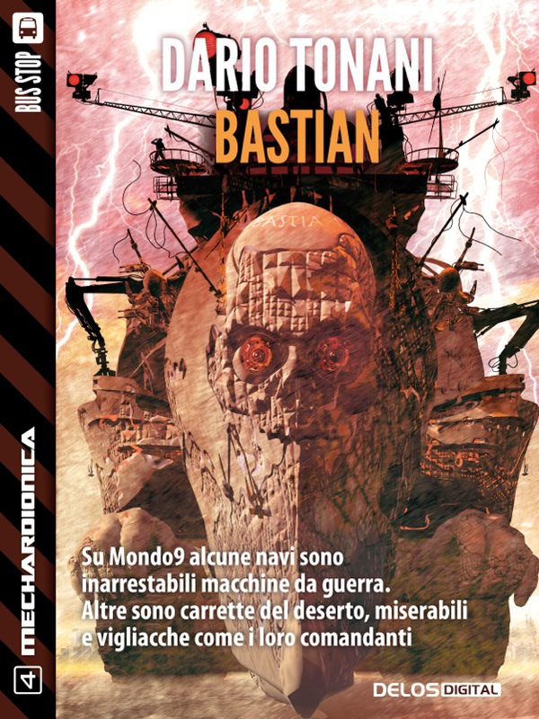 Qualcosa di nauseabondo marciva a poppa: la carogna gonfia di gas e mutilata delle pinne di un’enorme verdesca delle dune, 5-6 metri di lunghezza per almeno 7 tonnellate di peso. Molto più in alto, incatenata a braccia e gambe larghe ai due fumaioli, s’indovinava la sagoma controluce di un mechardionico gigante. Quattro o cinque metri d’altezza, ferro grezzo e possente. La testa deforme reclinata su una spalla.
