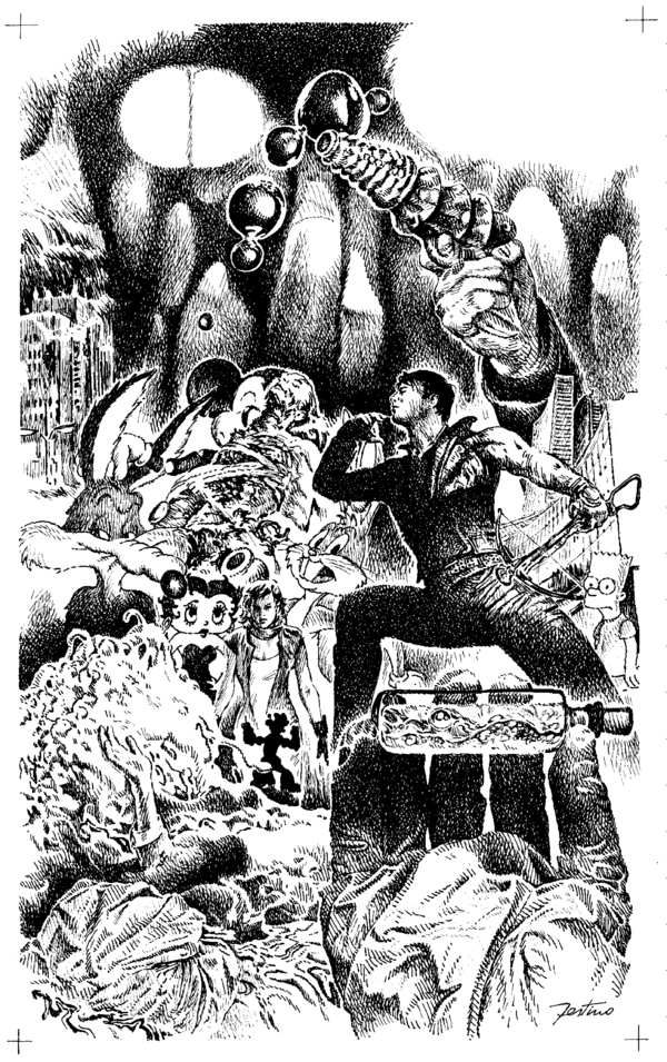 Le emergenze, però, non finiscono qui: un terzo della città è completamente sommerso dai residui allucinatori tossici dei cartoni. E’ un magma lento e freddo, un vero e proprio mare interno di poltiglia colorata, che stringe d’assedio la periferia orientale (la cosiddetta “WC – Wet City”) e avanza goccia dopo goccia, coagulo dopo coagulo, verso il centro, inglobando nella sua marcia ogni cosa…
